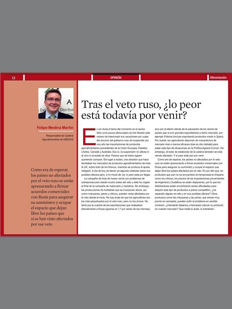 Es sin duda el tema del momento en el sector. Sólo unos pocos afortunados se han librado este verano de interrumpir sus vacaciones por culpa del anuncio del gobierno ruso de suspender por uno año las importaciones de productos agroalimentarios procedentes de la Unión Europea, Estados Unidos, Canadá, Australia. Eso sí, la suspensión no afecta ni al vino ni al aceite de oliva. Parece que de estos siguen queriendo comprar. Sin lugar a dudas, una decisión que hace tambalear los mercados de productos agroalimentarios de toda la Unión Europea, sobre todo de los frescos, mientras se produce el ajuste obligado. A día de hoy se tienen ya algunas certezas sobre sus posibles efectos pero, a mi modo de ver, lo peor está aún por llegar.